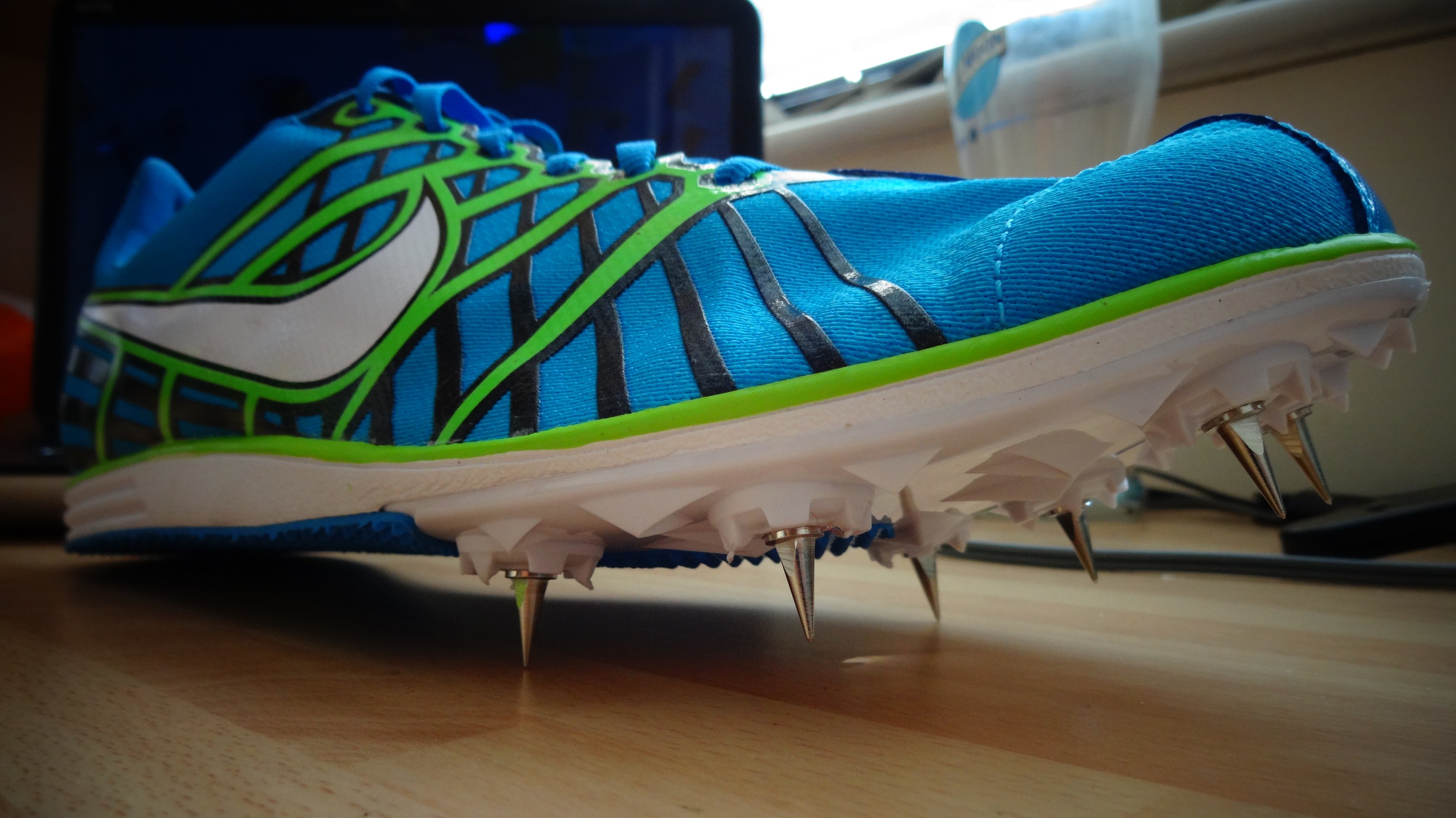 Spikskor (Nike Zoom Rival D6). Dessa kan man variera med olika långa spikar för olika ändamål. Jag kör på följande i nuläget: 12mm för cross country, 5mm för bana (inte alltid, men när man kör 200-ingar är det jävligt skoj med extra riv i steget).