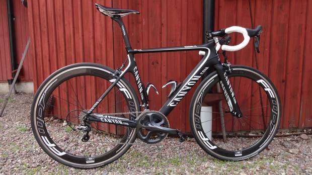 Min nya cykel! En Canyon Aeroad CF 7.0. Galet stor skillnad mot min tunga och flexiga gamla Scott. Hoppas att detta nya monster ska kunna hjälpa mig att cykla ännu fortare! (Fick räcka med Ultegra, samt att jag vet att man kanske inte ska ha svart sadel och vit styrlinda.. Men det är i alla fall ”bättre” än gul styrlinda! Jag ska byta. Sen.)