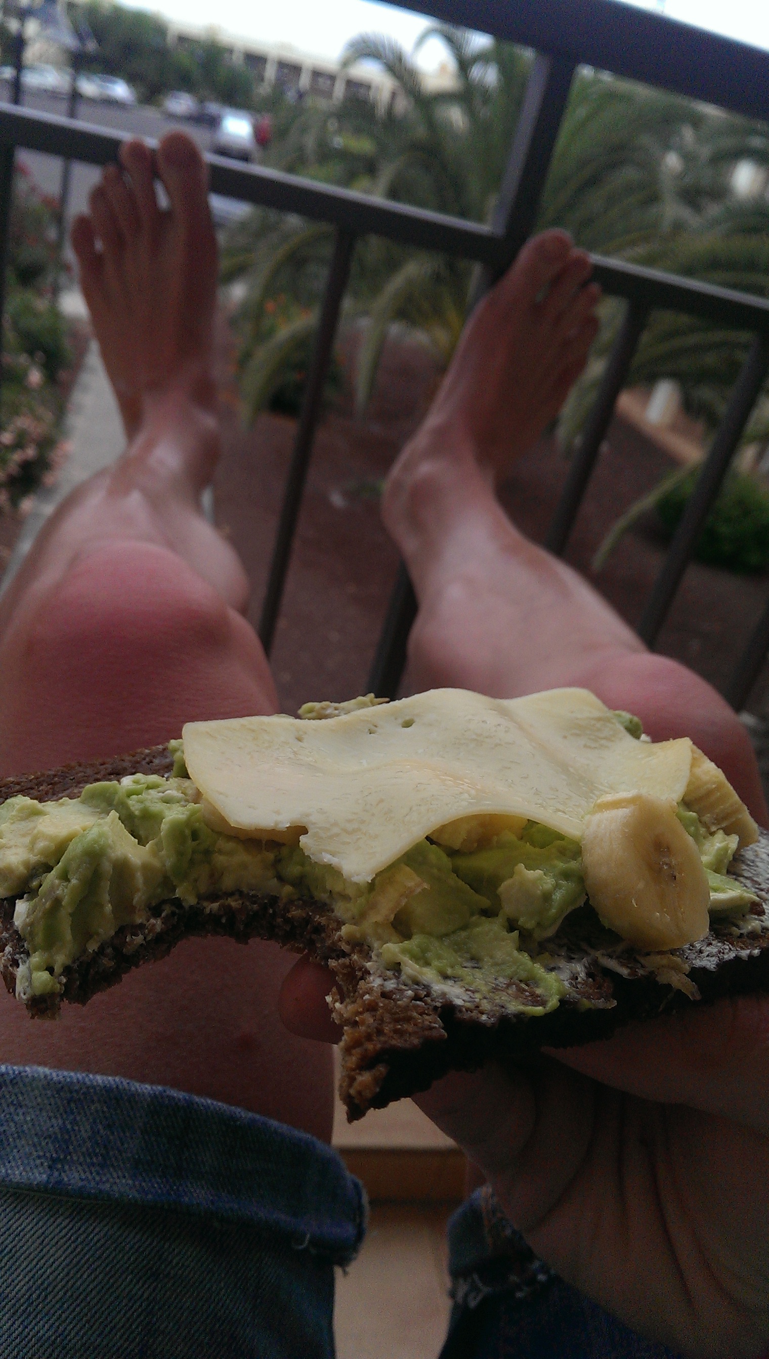 En vanlig syn. Relax-lunchmackan på balkongen.